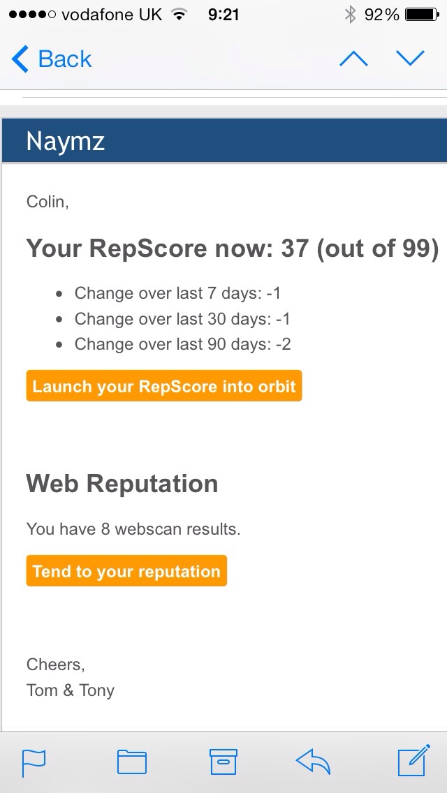 My RepScore has steadily edged down but fails to hit bottom, since I last did anything about it way back, maybe in 2010.