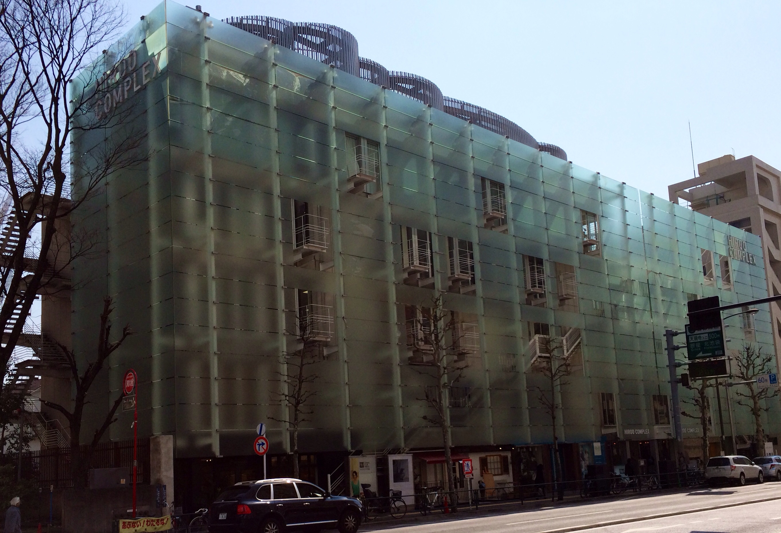 These two buildings are transformed into a “complex” with this frosted glass facade.