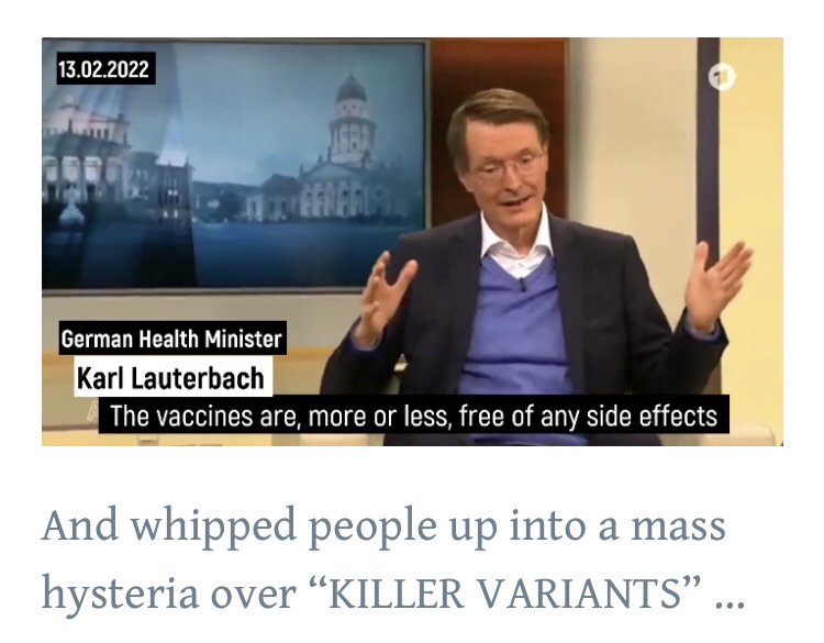 “Ok! I confess!! It was his fault!” exclaimed Karl Lauterbach, the German Minister of Health, tearfully breaking under the relentless torture of enforced political servitude.